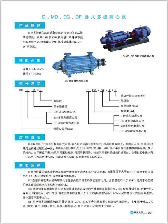 D、MD、DG、DF卧式多级离心泵